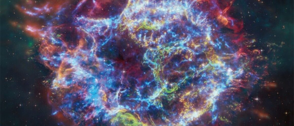 The roughly circular Cas A supernova remnant spans about 10 light-years, is over 340 years old, and has a superdense neutron star at its center — the remains of the original star’s core. Scientists using NASA’s Chandra X-ray Observatory had previously identified signatures of iron, silicon, sulfur, and other elements within Cas A.